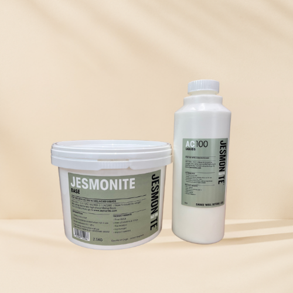 Jesmonite AC100 تركيبة (بودرة + سائل) مائية وصديقة للبيئة، خالية من المذيبات والمواد الضارة. النتيجة؟ مظهر ناعم وأنيق مثالي للديكور الداخلي والقطع الملونة، مع قوة ومتانة تخليك واثق من شغلك